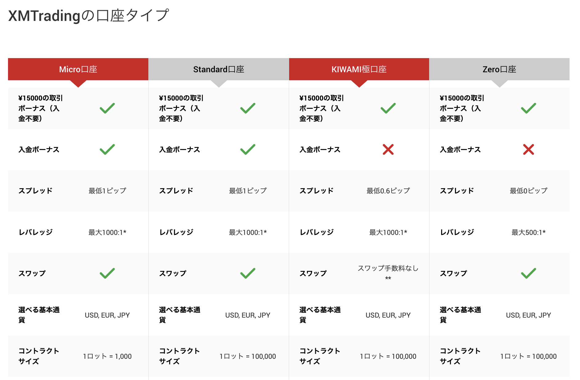 XMでは、スタンダード口座・KIWAMI極口座・ゼロ口座の「1ロット=10万通貨」に対して、マイクロ口座のみ「1ロット=1,000通貨」に設定されています。