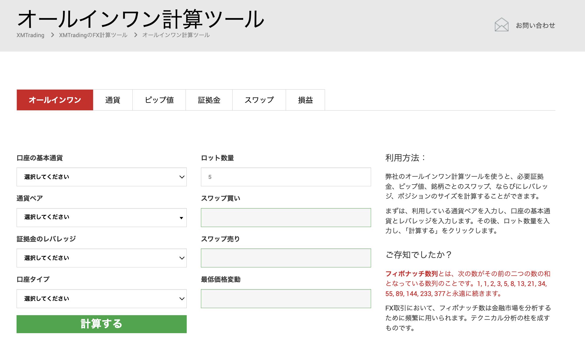 XM公式サイトには、銘柄・レバレッジ・ロット数を入力するだけで必要証拠金をリアルタイムで算出できる証拠金計算機が用意されています。