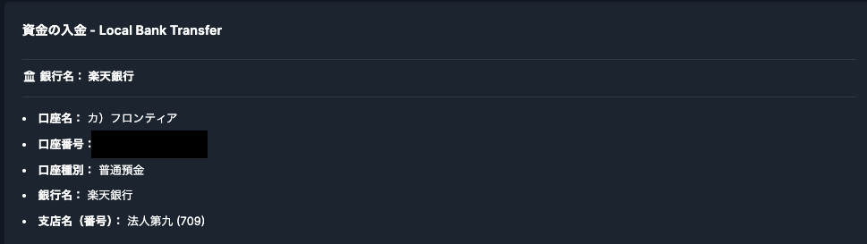楽天銀行からXMTradingへの入金は、国内銀行送金(Local Bank Transfer)を利用して行います。