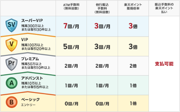 | ランク | 条件例 | 無料振込回数 |