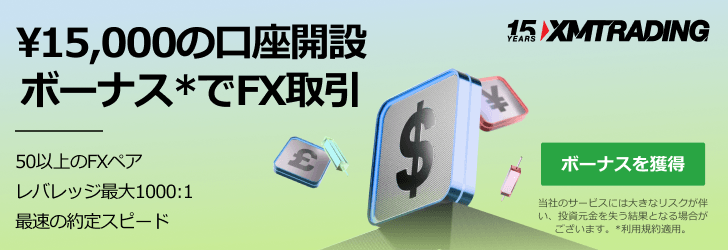 XMTradingでは新規口座開設で15,000円のボーナスを配布中!